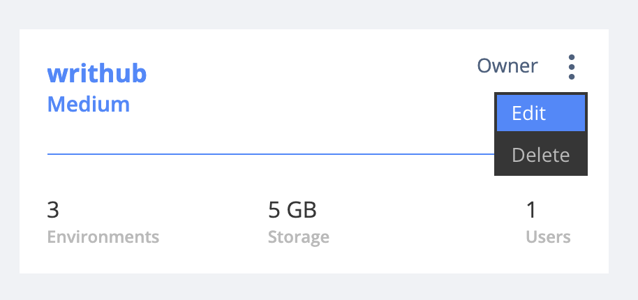 For the projects that you are the Account Owner for, you will see three vertical dots. Click those dots to pull up a drop-down menu and select edit to modify that project’s configuration.