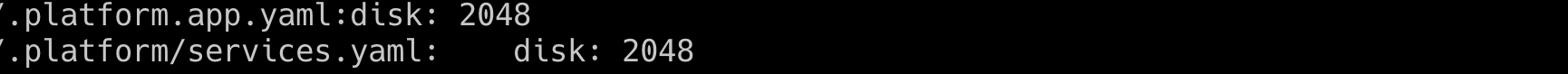 find . -type f -name '.platform.app.yaml' -o -name 'services.yaml' |xargs grep disk: